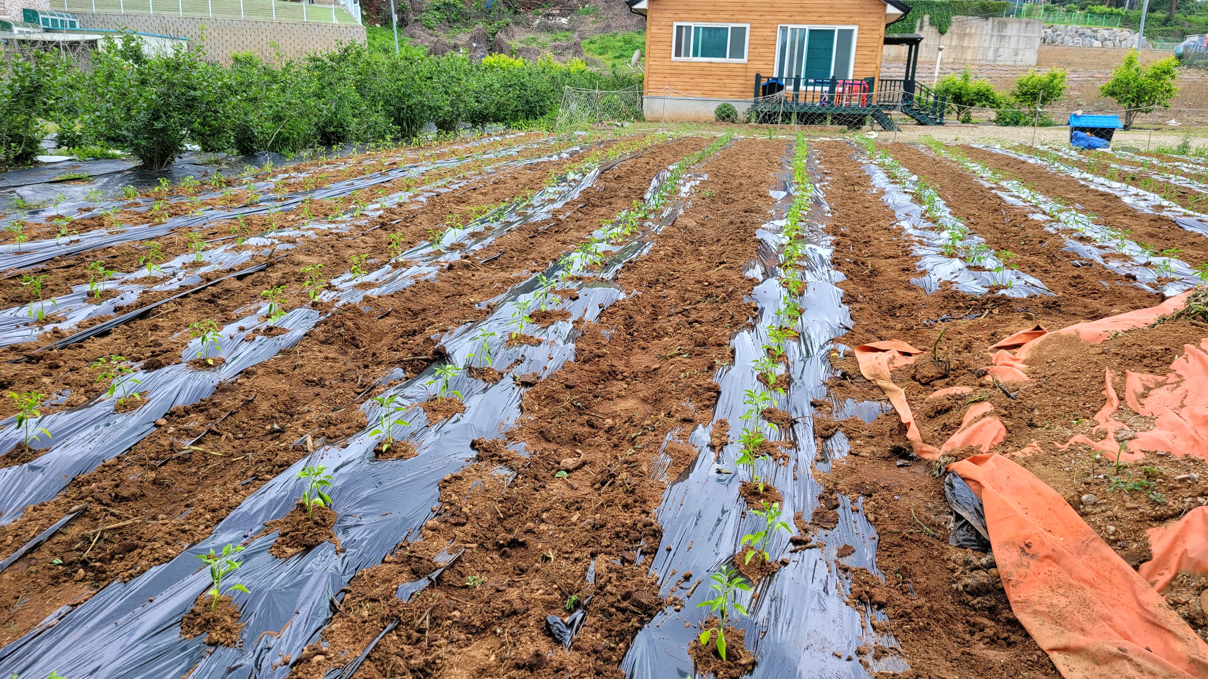 요양원 정원옆 밭에 고추를 심었습니다.